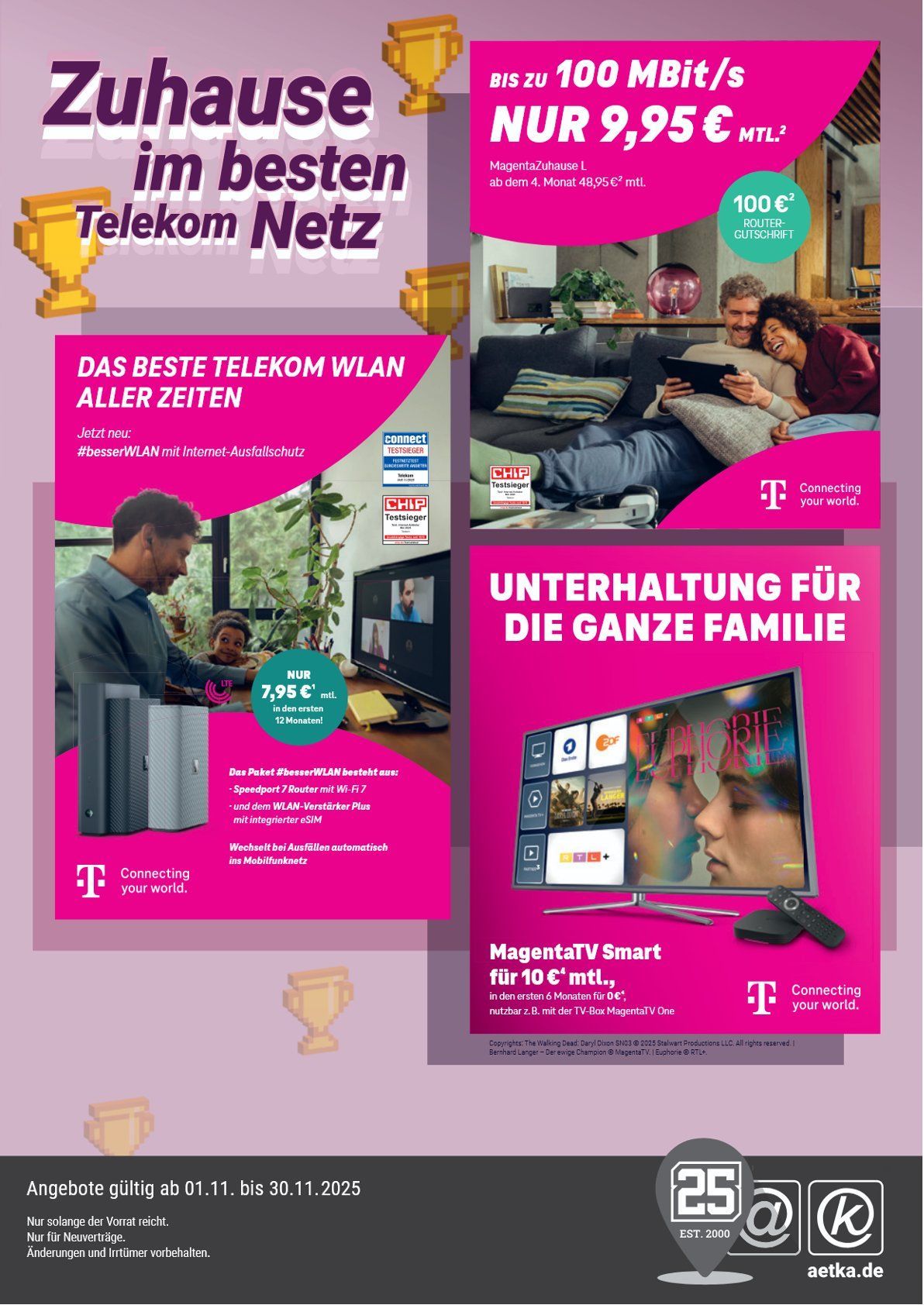 * Bei der Kombination eines Hauptvertrags mit einer MagentaMobil PlusKarte (Flex) und zwei MagentaMobil PlusKarten+ (Flex) setzt sich der monatliche Grundpreis wie folgt zusammen: z.B. MagentaMobil S Flex für 39,95 € (Erstkarte) + 19,95 € (Zweitkarte) + 9,95 € (Drittkarte) + 9,95 € (Viertkarte) = 79,80 € ÷ 4 = 19,95 € Durchschnittspreis. Der Bereitstellungspreis i.H.v. 39,95 € (Hauptkarte) entfällt aktionsweise für die PlusKarte/PlusKarte+ bei Buchung bis zum 14.08.2022. Voraussetzung für die MagentaMobil PlusKarten (Flex) ist ein bestehender Telekom Mobilfunk-Laufzeitvertrag der aktuellen Generation (MagentaMobil, vermarktet ab dem 06.09.2019) mit einem monatlichen Grundpreis von mindestens 34,95 €. Ausgeschlossen sind Young Tarife und Tarife der Marke congstar. Das Inklusivdatenvolumen aller MagentaMobil PlusKarten (Flex) entspricht dem des zugehörigen Hauptvertrags. Im Tarif MagentaMobil S (Flex) beträgt es 10 GB. Nach Verbrauch des Datenvolumens wird die Bandbreite im jeweiligen Monat auf max. 64 KBit/s (Download) und 16 KBit/s (Upload) beschränkt. Bei Wegfall des Hauptvertrags wird die MagentaMobil PlusKarte (Zweitvertrag) zu den Konditionen des Hauptvertrags fortgeführt. Bei bestehenden MagentaMobil PlusKarten+ als Drittverträgen wird stattdessen einer dieser Verträge zu den Konditionen des Hauptvertrags fortgeführt. Ein Angebot von: Telekom Deutschland GmbH, Landgrabenweg 151, 53227 Bonn.